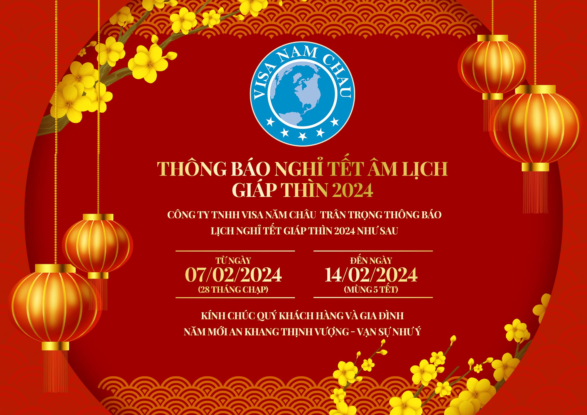 Công ty TNHH Visa Năm Châu kính chúc Quý khách hàng một năm Giáp Thìn 2024 An Khang Thịnh Vượng – Vạn Sự Như Ý.