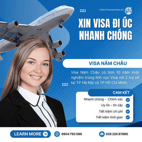 Dịch vụ làm visa đi Úc nhanh chóng của Visa Năm Châu tiết kiệm thời gian và tỉ lệ đậu lên tới 99% đã và đang được hàng nghìn khách hàng trên cả nước minh chứng. Với sự hỗ trợ tư các cố vấn cấp cao, chuyên viên kinh nghiệm, quá trình xin visa Úc chưa bao giờ dễ dàng như thế. Liên hệ ngay Visa Năm Châu để được hỗ trợ và cung cấp mọi dịch vụ liên quan đến Visa nhé: