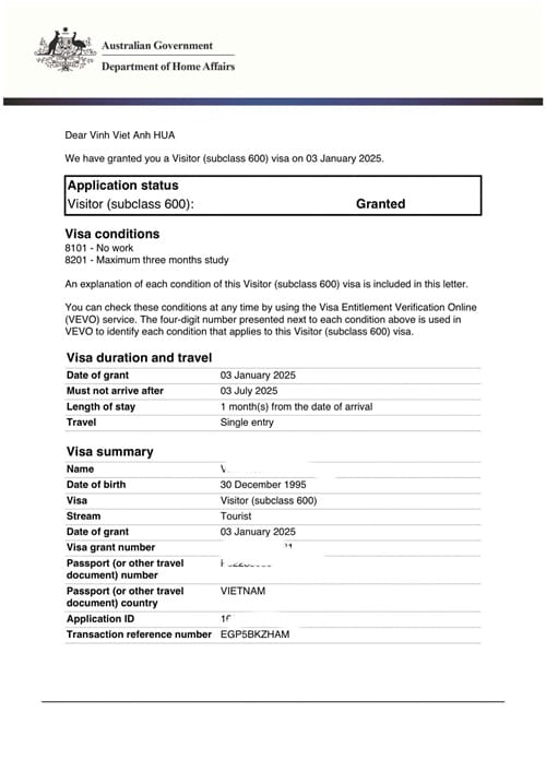 Người xin visa cần lưu ý kỹ thông tin được ghi trong thư cấp visa (grant letter) như: loại visa, ngày hiệu lực, thời hạn hết hạn, và thời gian lưu trú tối đa cho mỗi lần nhập cảnh để lên kế hoạch phù hợp.